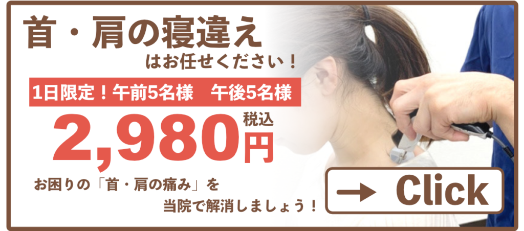 寝違えが発生してから最初の3日間は特に炎症が強いため、この期間に施術を開始することをおすすめします。