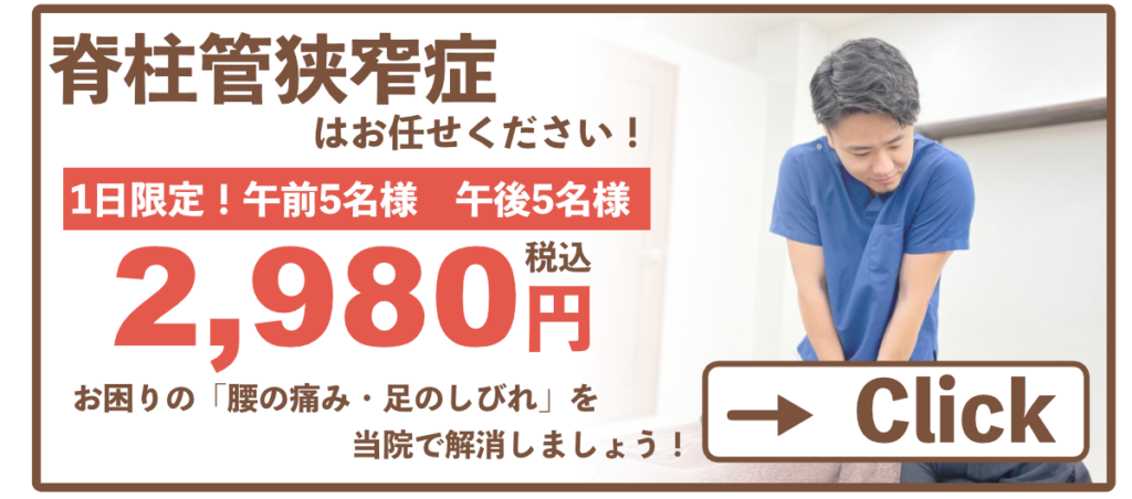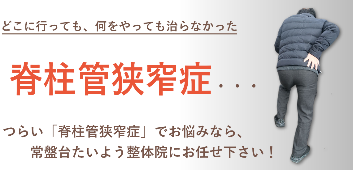 脊柱管狭窄症は、背骨や靭帯の変形・病変で起こります。そのため、症状が進行してしまうと施術期間も長くなりがちです。(逆を言うと、早いほど改善しやすいです)