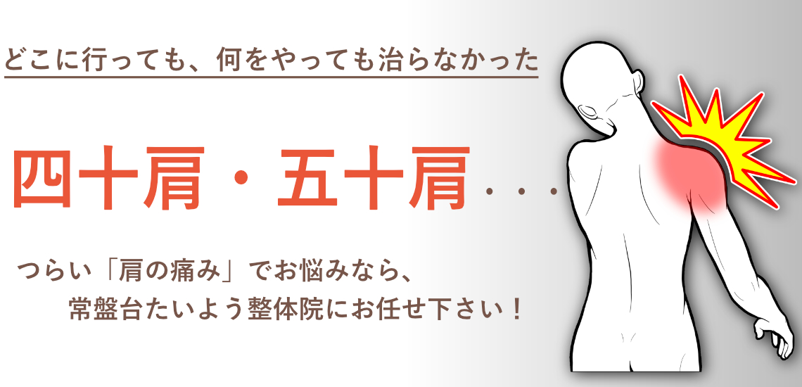四十肩・五十肩は、正式な名称ではありません。病院では「肩関節周囲炎」や「凍結肩」と呼ばれています。40歳以降の方で悩まれている方が多いので、40肩/50肩と呼ばれています。