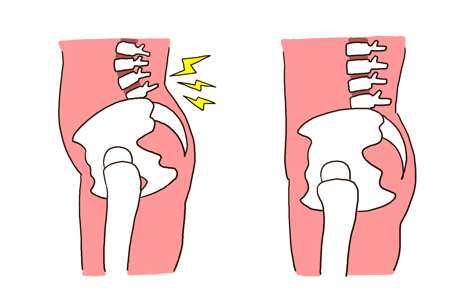 姿勢の乱れとしてよく見られ、慢性的な腰痛や体の疲労感を引き起こします。