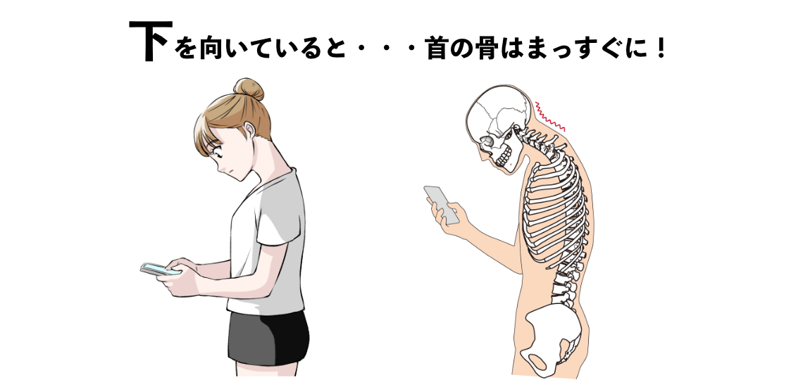 ストレートネックは「下を向く姿勢」が続く事で発生します。